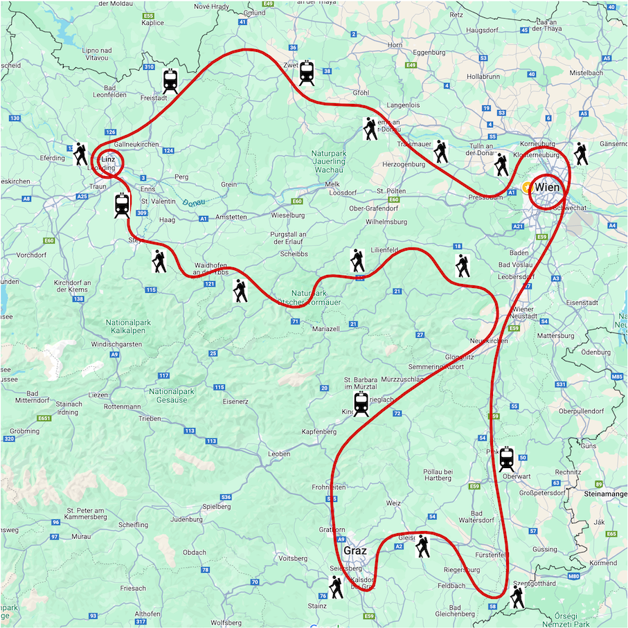 - Wien - NÖ - OÖ - NÖ - Stmk - Wien