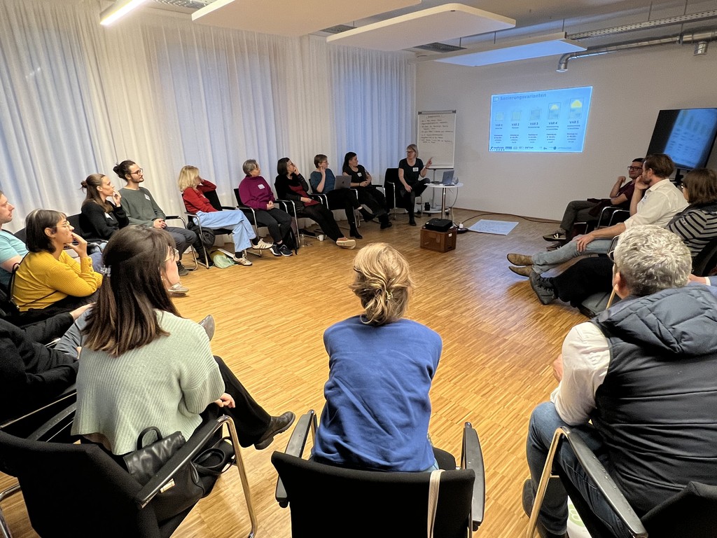 Forschungsprojekts Zinshaus X Baugruppe statt. Ziel des gut besuchten Workshops war es, allen Beteiligten, aber vor allem den Baugruppeninteressierten, einen Einblick ins Projekt zu geben und unsere bisherigen Überlegungen zu Kooperationsmöglichkeiten zwischen Zinshauseigentümer:innen, Bestandsmieter:innen und Baugruppeninteressierten zu teilen und dazu Feedback einzuholen.
